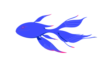 人間形態時は背の低い少年の姿をしているが、正体は巨大な青い魚の怪物。