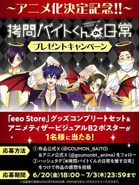 『拷問バイトくんの日常』2026年冬、アニメ化決定!メインキャストに土岐隼一×寺島拓篤×永塚拓馬×阿座上洋平