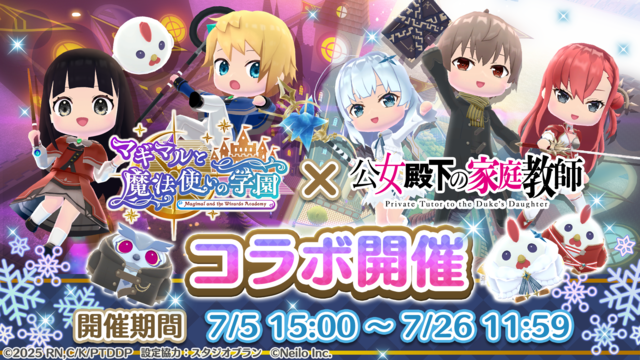 2025年7月5日(土)15:00より、魔法学園スローライフオンラインRPG「マギマルと魔法使いの学園」とのコラボイベントも始まります。