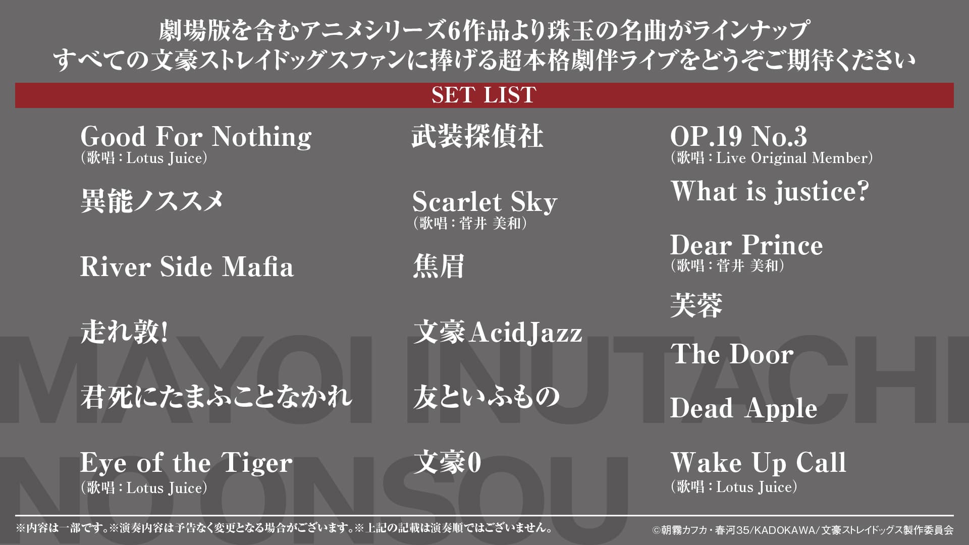 公演名:文豪ストレイドッグス -迷ヰ犬達ノ音奏-(ぶんごうすとれいどっぐす まよいいぬたちのおんそう)