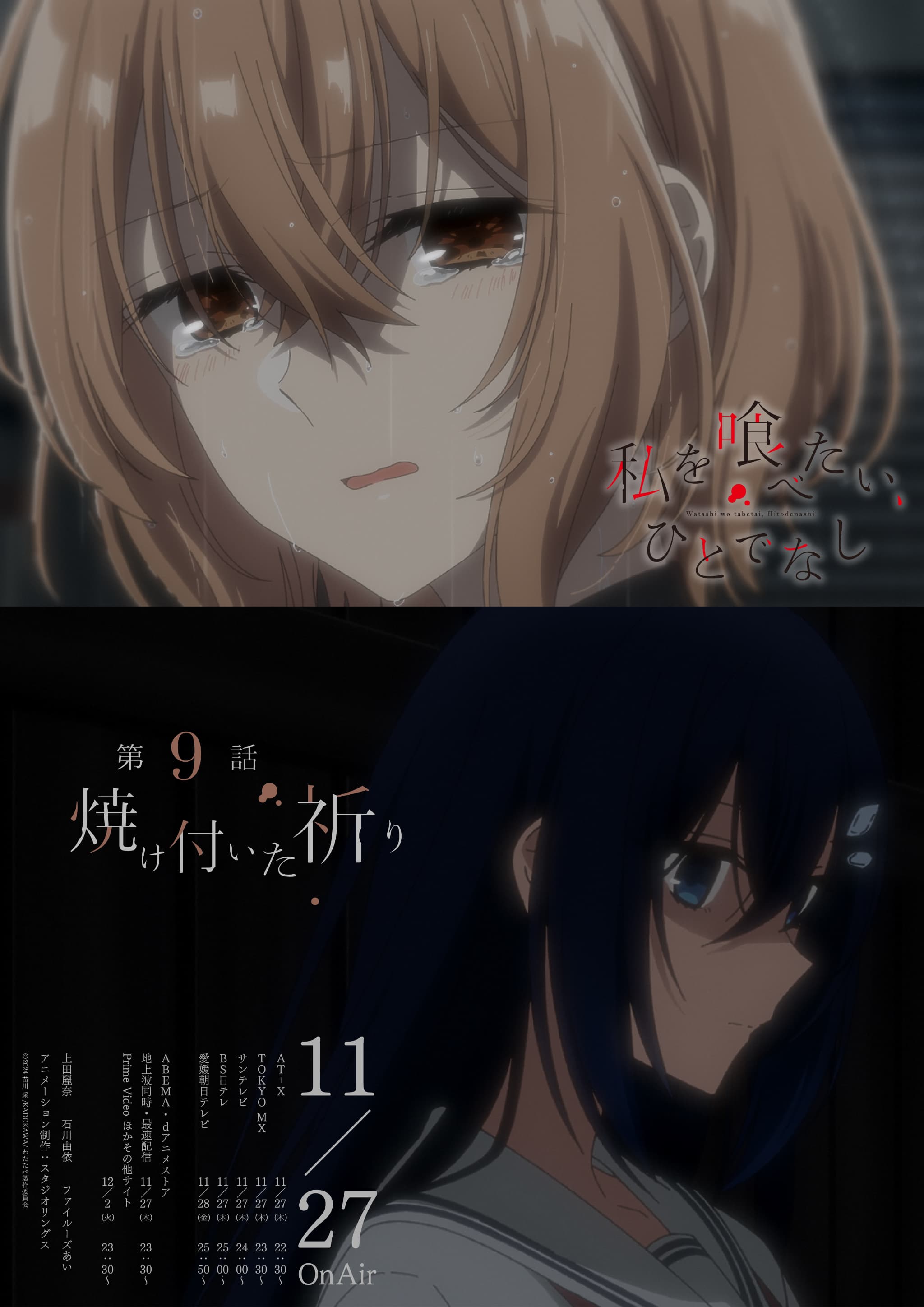 現在大好評放送中のTVアニメ「私を喰べたい、ひとでなし」より、第9話『焼け付いた祈り』のWEB予告映像と、5種類のエモーショナルポスターが解禁されました!