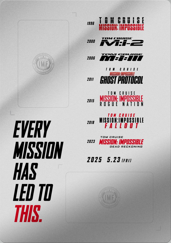 長年にわたり映画界を牽引してきた「ミッション:インポッシブル」シリーズの集大成となる本作。ムビチケカードを手にし、シリーズの軌跡を胸に刻みながら、イーサン・ハントの最後のミッションを見届けよう!