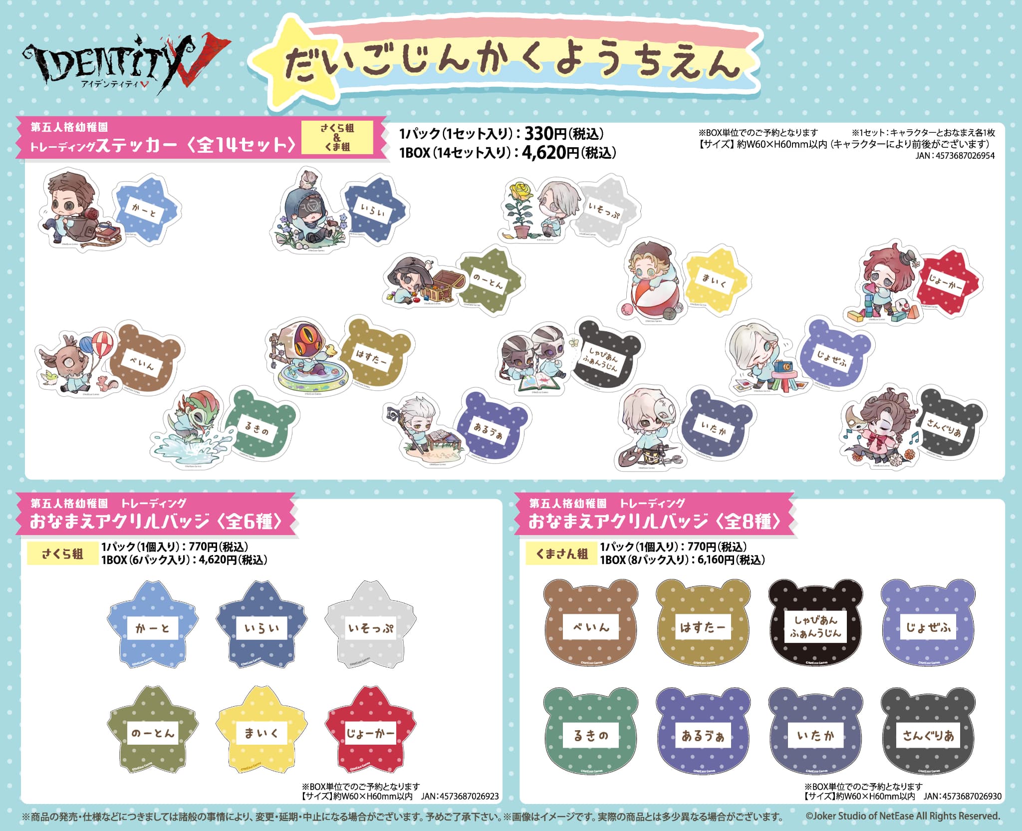 第五人格幼稚園 トレーディングステッカー さくら組&くま組